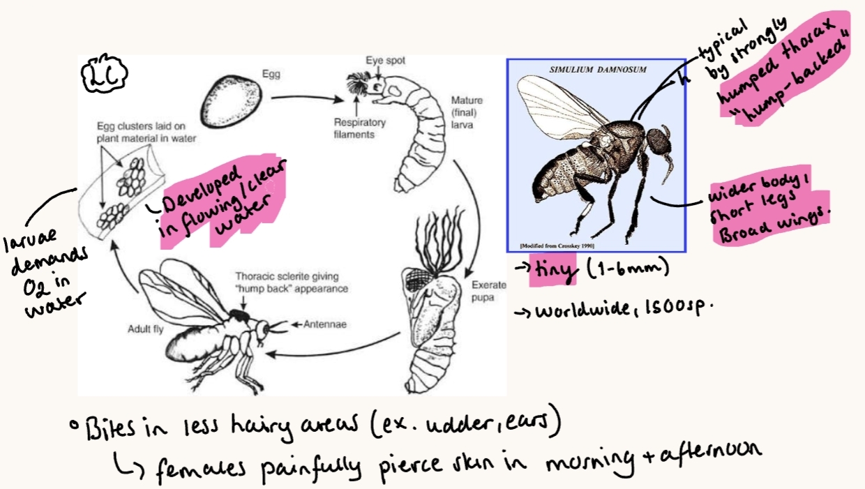 Simuliotoxicosis - vectors of: leucocytozoon, viruses of stomatitis, trypanosoma, dirofilaria. onchocerca spp.