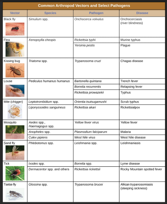Common arthropod vectors - for pathogens: