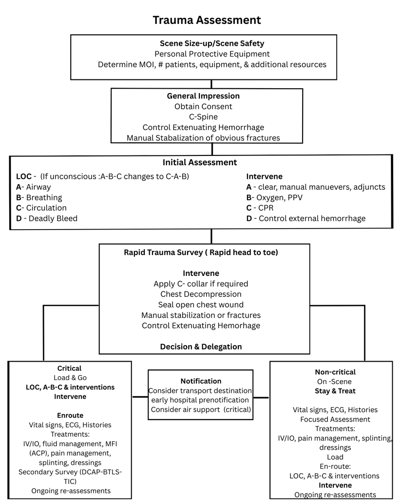 •Assessing hazards, prioritizing care, and determining transport urgency.