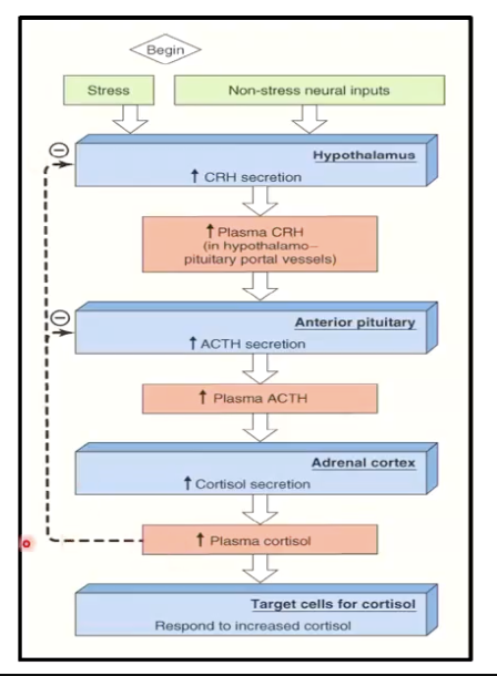 - inflammatory cytokines stimulate ACTH, hence cortisol secretion in a -ve loop to dampen inflammatory responses