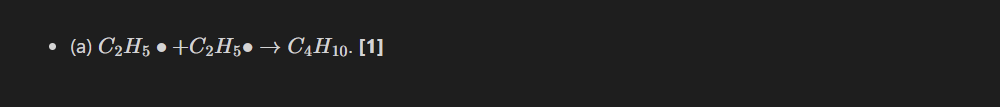 Ethane reacts with chlorine under UV light. One of the termination steps produces butane.