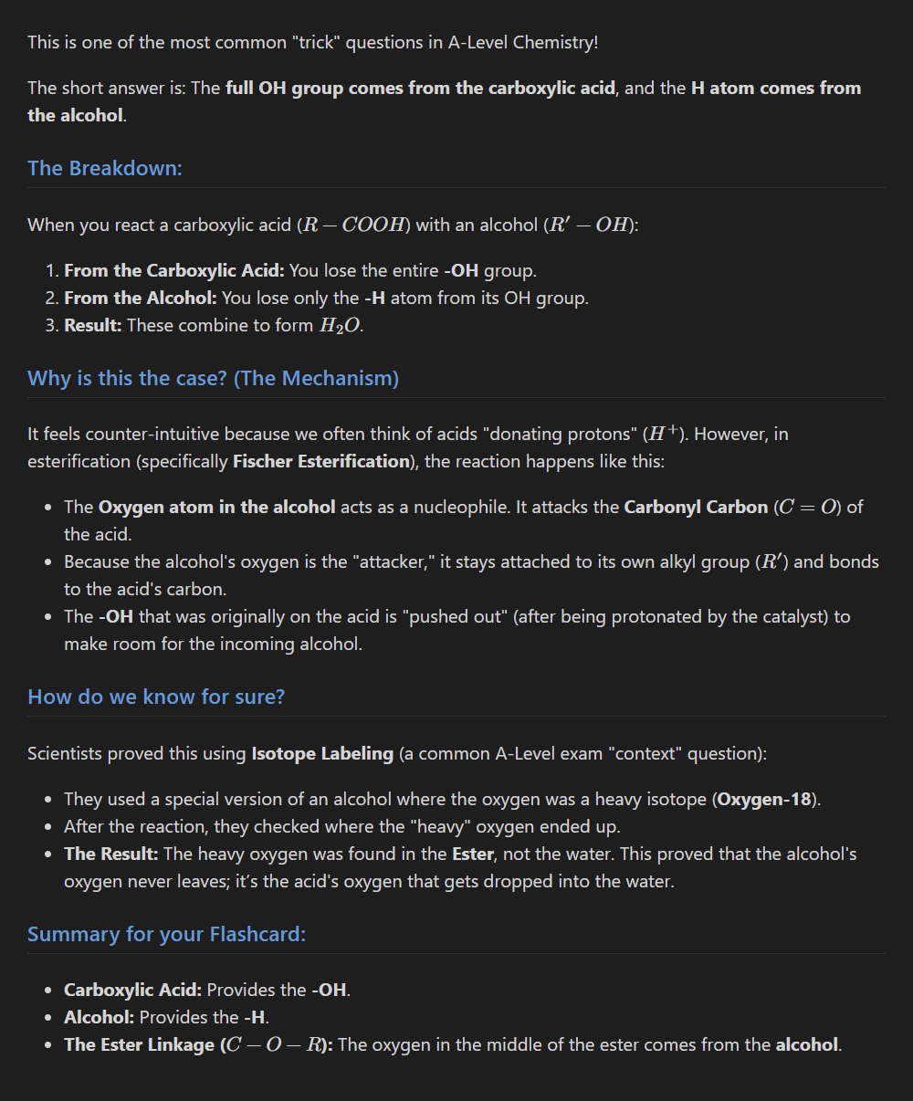 Ester formed from -COOH and -OH, where does the full -OH drop out from?