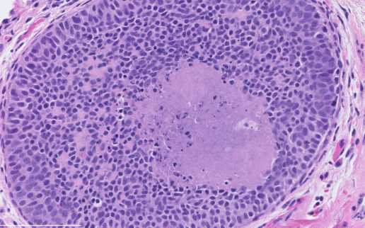 Tumor lobulado e irrecular, asociado a una cicatriz