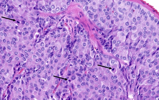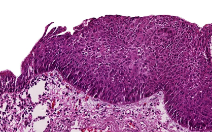 Cél displásicas de alto grado a lo largo de los septos alveolares