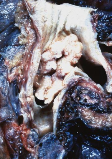 Lesión en botón de cuello de camisa, cuando penetran tejido peribronquial