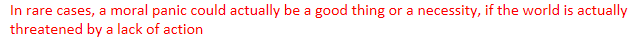 Not every moral panic has to have statistics assigned to it. However, the ones that do, are often considered much worse than those without, since the statistics are seen as undeniable evidence by the public.