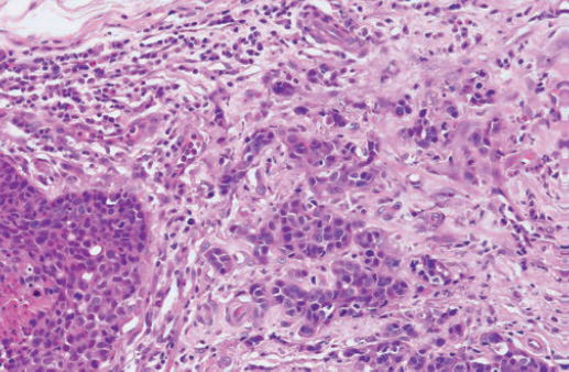 Histologically benign appearance, including lack of invasion, minimal anisokaryosis/pleomorphism, low mitotic index.