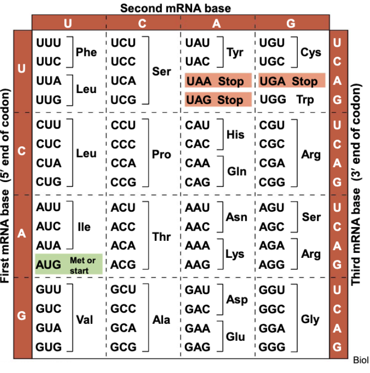 Function: mRNA carries the genetic instructions copied from DNA in the form of codons, which specify the order of amino acids in a protein.