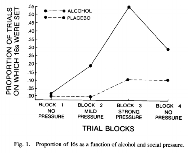 -those in the alcohol group were more susceptible to this pressure to commit an aggressive act
