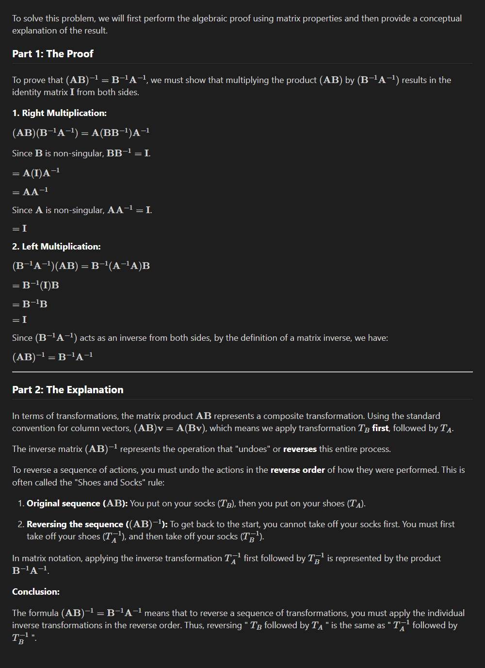 How to tell what way around to multiply the inverse matrix?