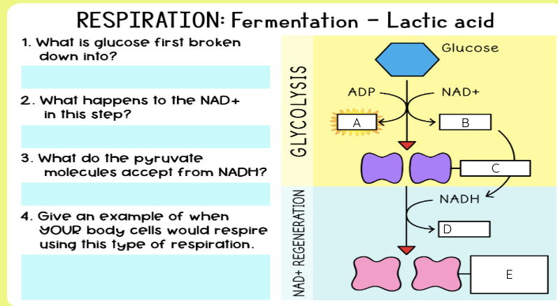Glucose is converted into two pyruvate molecules. This releases energy to generate ATP from ADP and generate NADH from NAD+