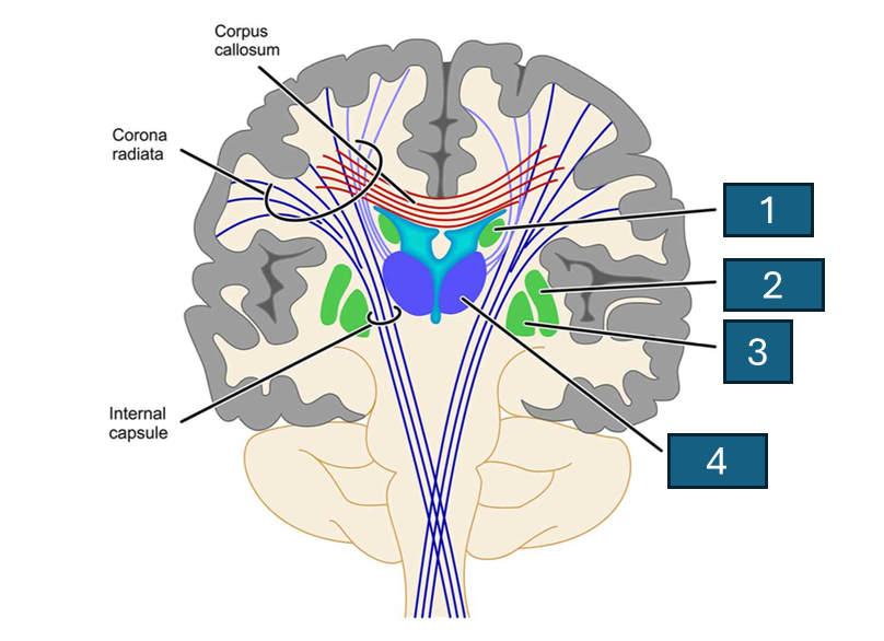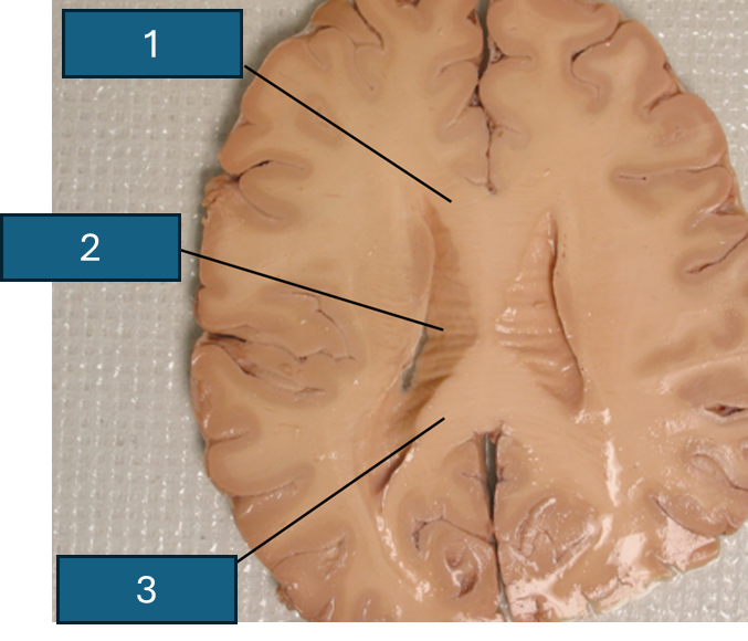 corpus callosum genu, lateral ventricle, corpus callosum splenium