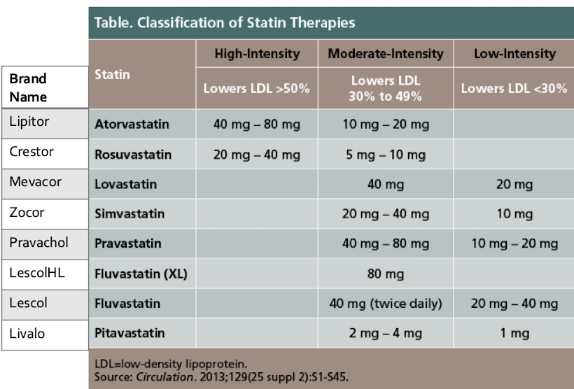 Simvastatin >20 mg; and Pravastatin >40 mg.