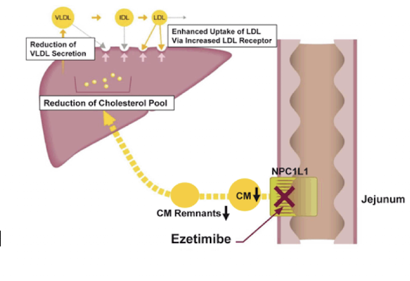 Additive reduction in LDL; leading to greater LDL reduction than with a statin alone; similar to high-intensity statins.
