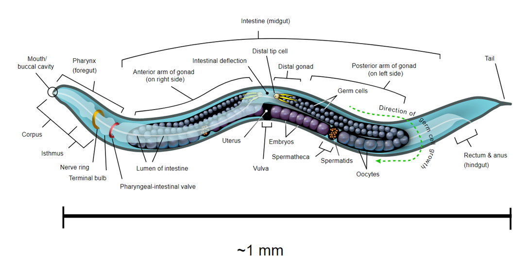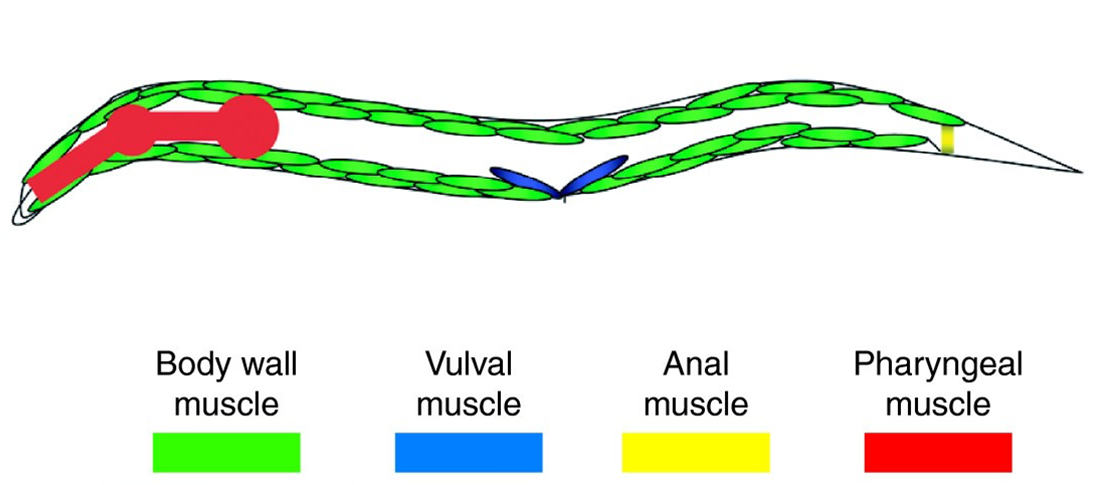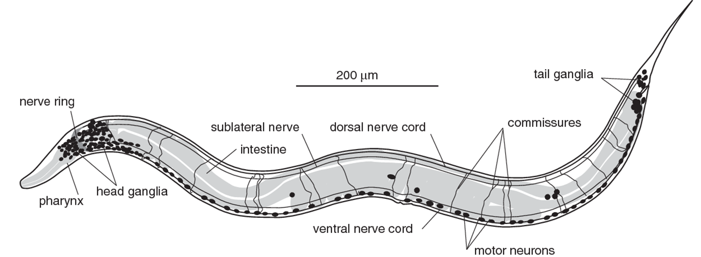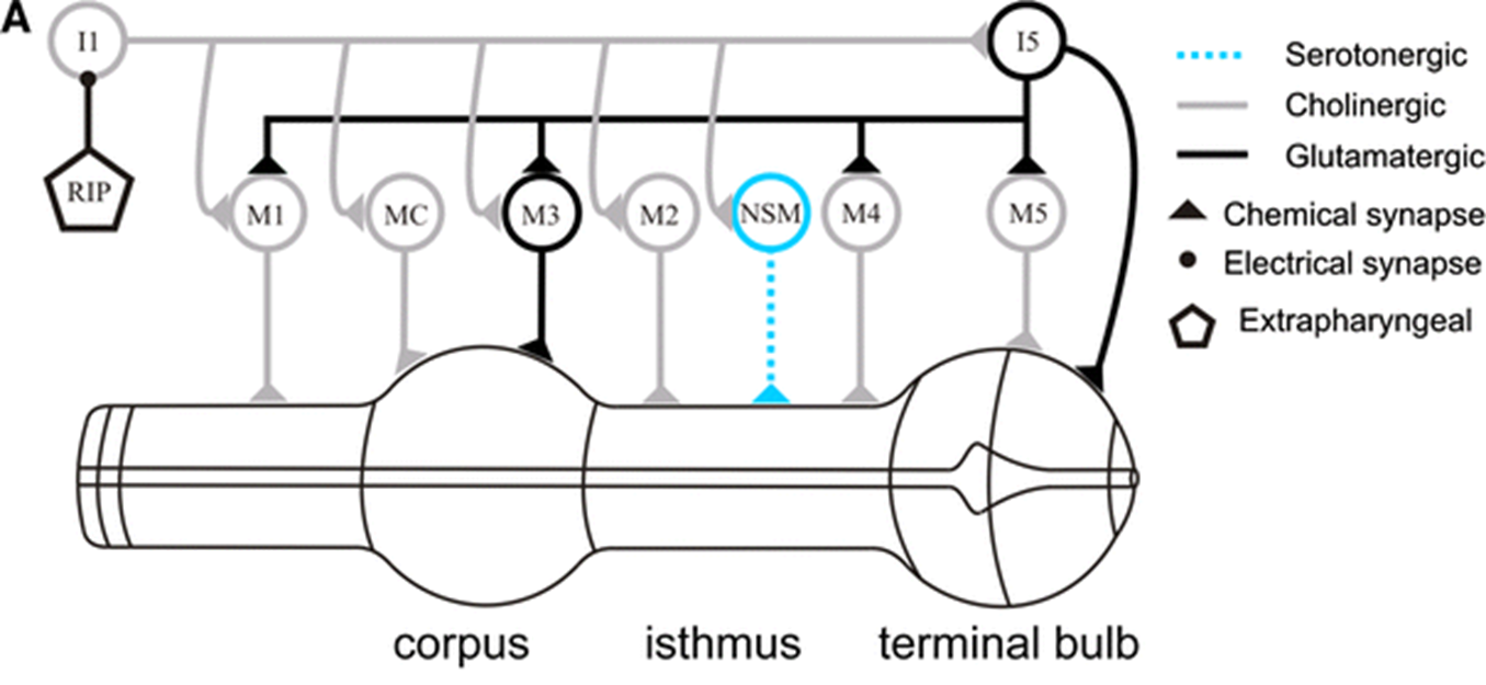 pharynx: muscular structure innervated by 20 neurons which is important for sucking up bacteria