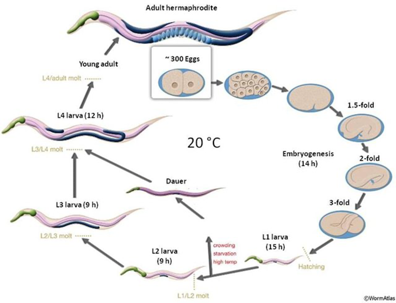 after the worm hatches it progresses L1-L4 where theres 4 larval stages