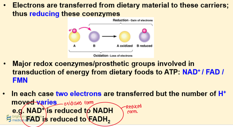 The Redox Coenzymes/Prosthetic Groups