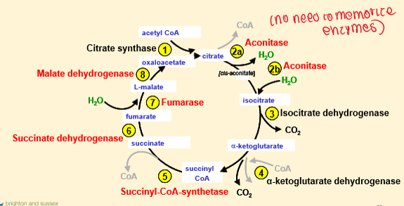 9 Enzymatic Steps in the TCA Cycle