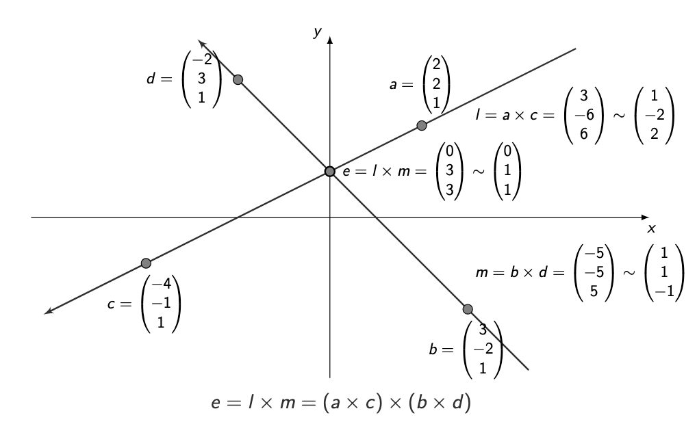 A line in projective space is represented by a vector: