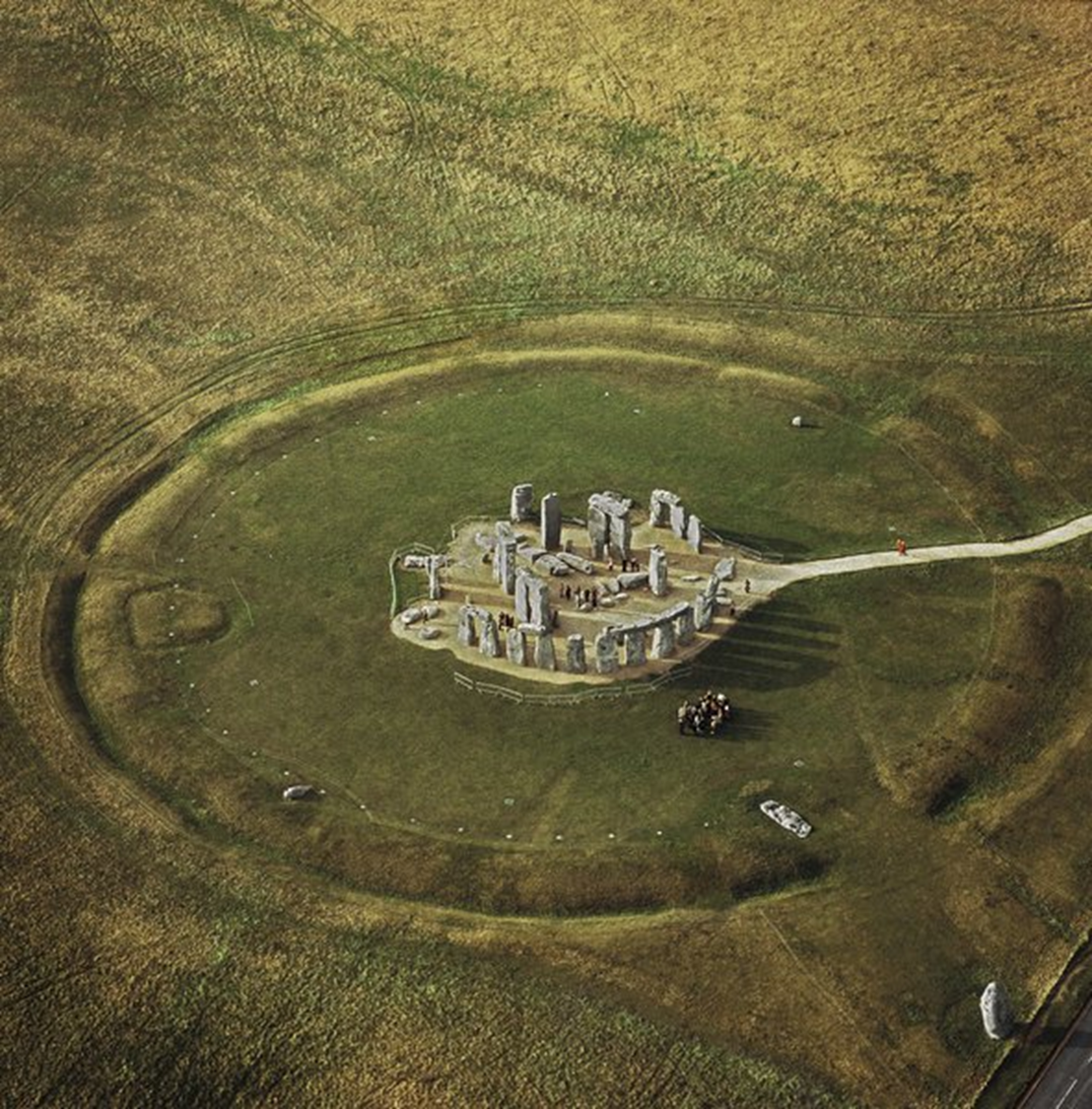 a circle of stones or posts, often surrounded by a ditch with builtup embankments