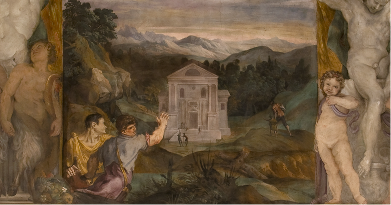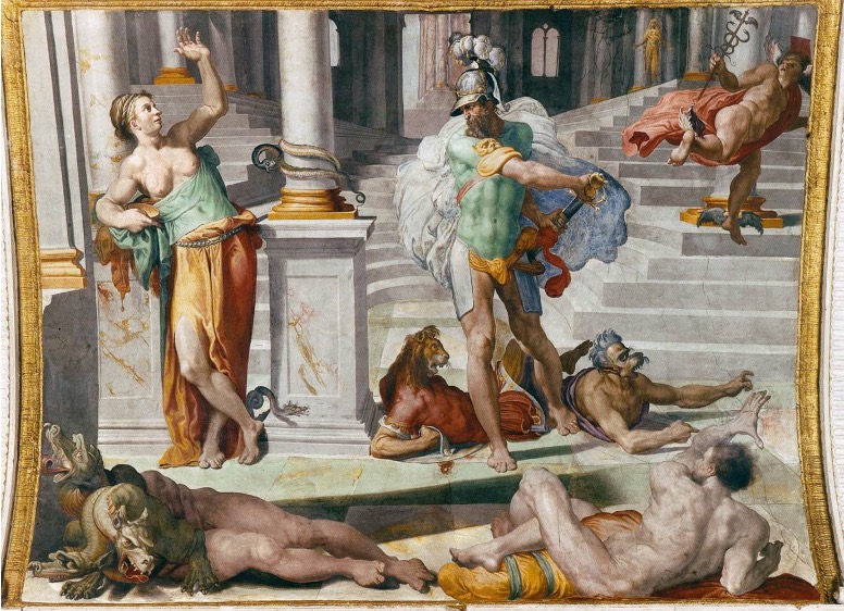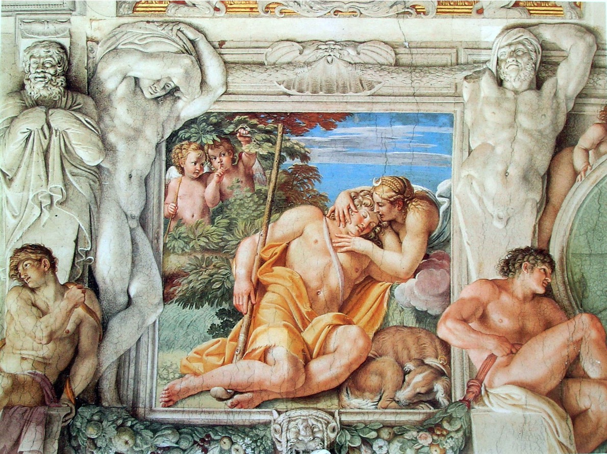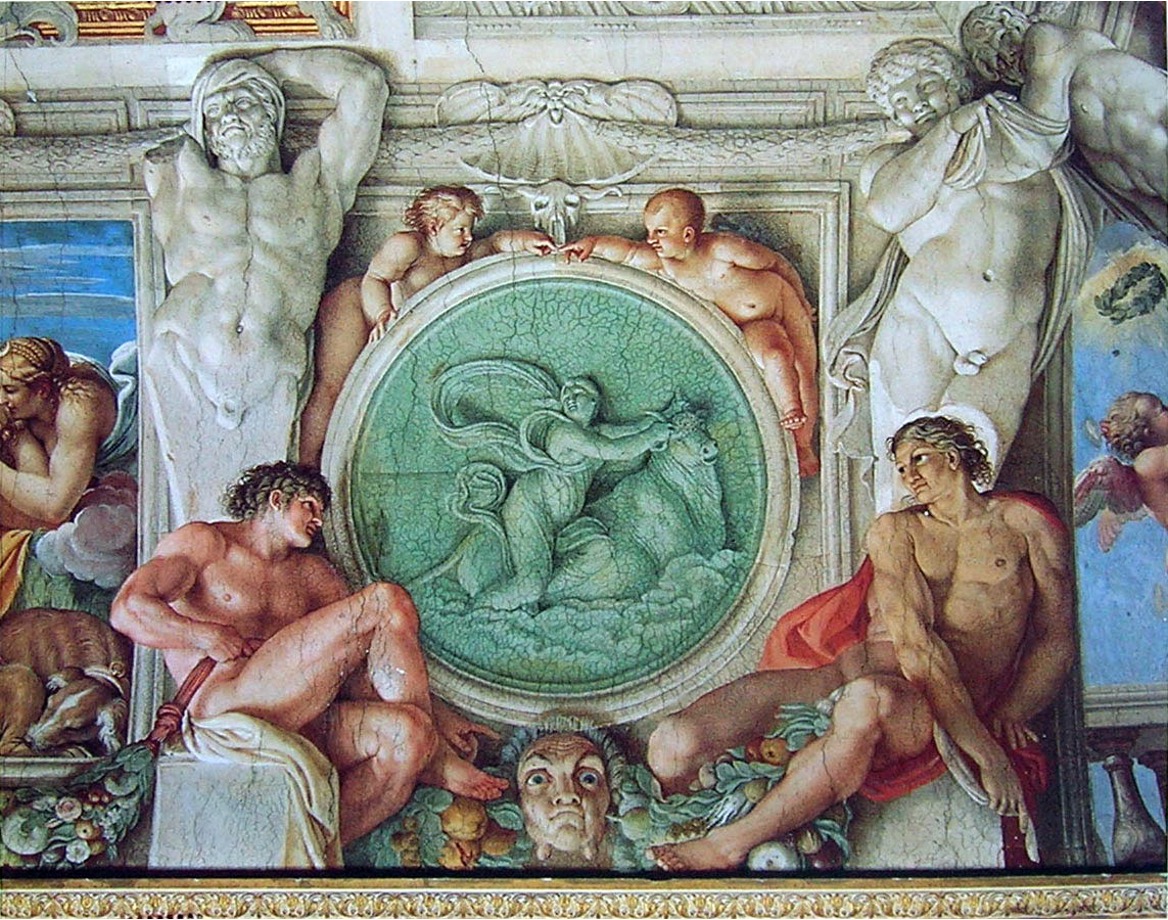 Pellegrino Tibaldi, Odysseus and Circe and Ignudo, late 16th, Bologna, Poggi Palace