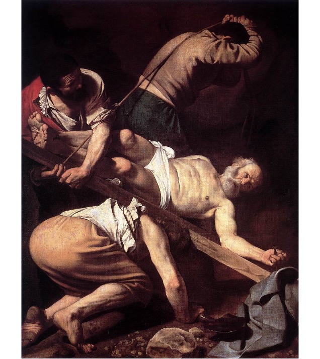 Caravaggio’s Crucifixion of St. Peter, early 17th, Rome, S. Maria del Popolo, Cerasi chapel