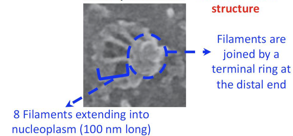 Distal Ends of the filaments joined by a terminal ring forming a nuclear basket structure