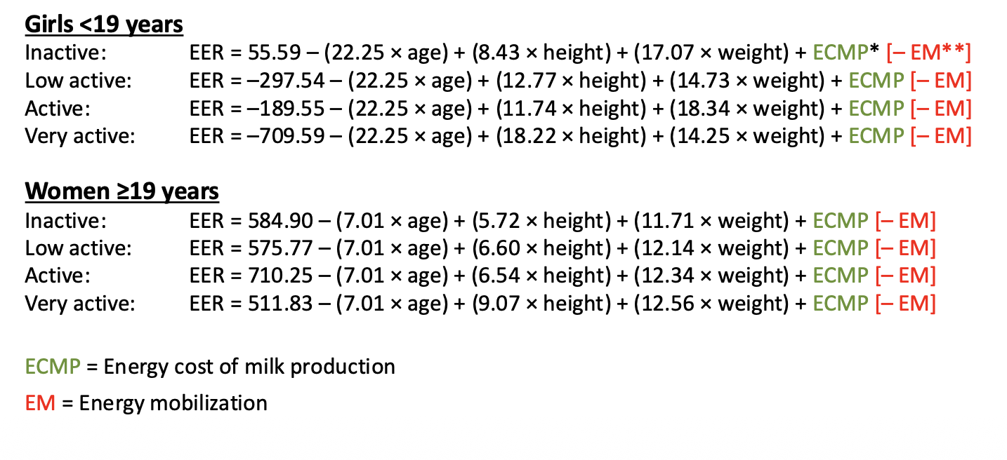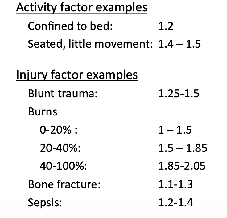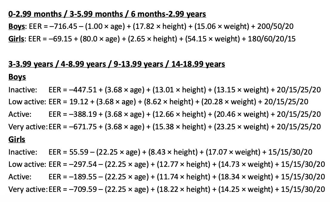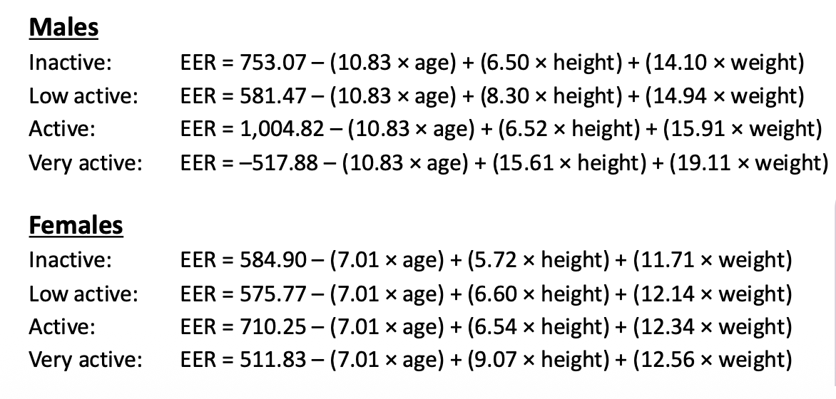 can be estimated based on energy expidenture assuming that energy expended/day = energy required/day