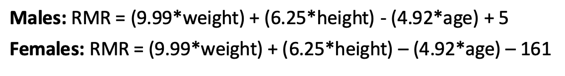 RMR: the rate of energy expenditure when at rest, and this is measured after an 8-12 hour fast and after a 30 minute rest, this can be ~3-10% higher than BMR