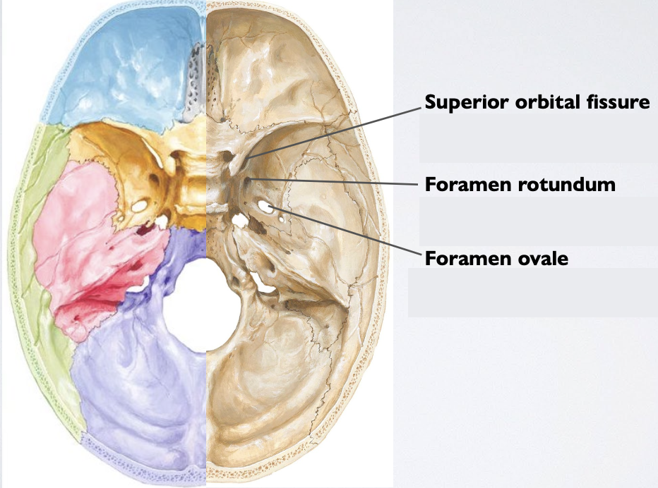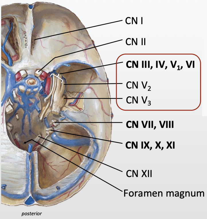 V1 (and CN III, IV, VI) → Superior orbital fissure