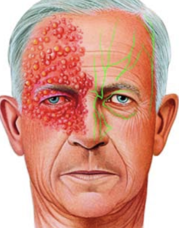 → viral disease causing a unilateral, painful skin rash