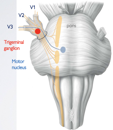 these post-synaptic SNS fibers → sensory limb of corneal reflex