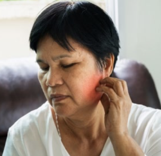 Triggers = eating, talking, shaving, or light touch