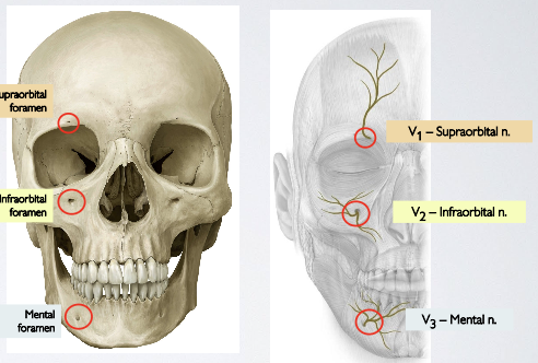 descriptive of their location (foramen) and the skin area/region they innervate