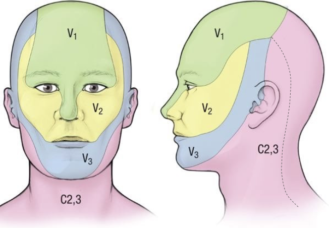Trigeminal Nerve = main sensory nerve of the face and anterolateral scalp