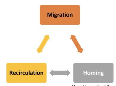 Can migrate from blood into tissues, be “homed” to these tissues & recirculate into the blood or to lymphoid tissues.