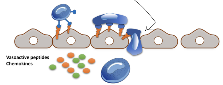 This interaction allows anchoring of circulating immune cells to the blood vessel wall and allowing rolling and crawling.