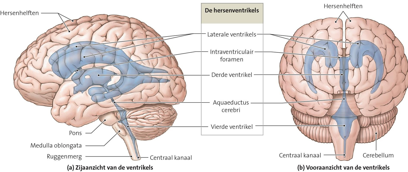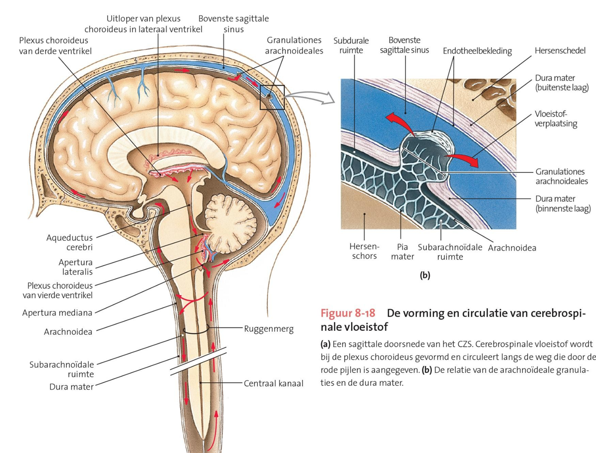 -subarachnoïdale ruimte (cerebrospinale vloeistof dat gemaakt is in 3e en 4e ventrikel)(ontwikkeld)