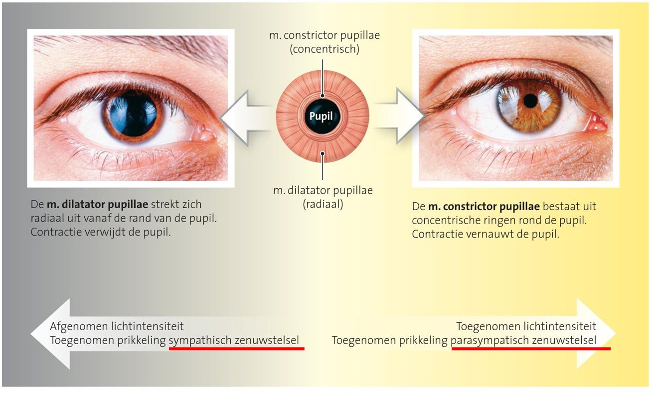 toegenomen lichtintensiteit + toegenomen prikkeling van parasympatische zenuwstelsel