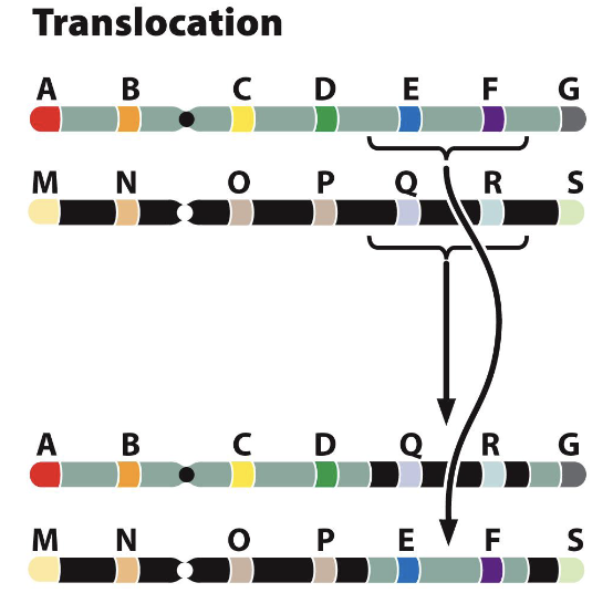 chromosomal rearrangement where a segment of a chromosome that includes the centromere is broken, flipped, and reinserted in reverse order. This changes the order of genes on the chromosome, but not the total amount of genetic information
