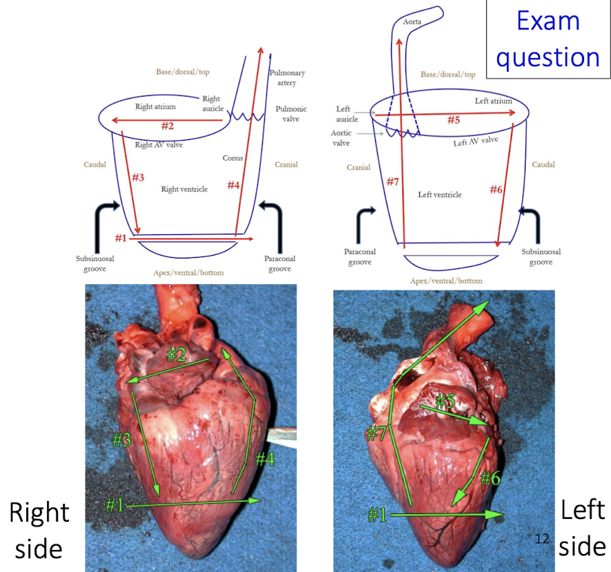 Follow atria → inflow → outflow