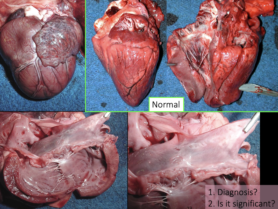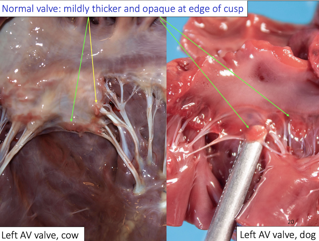 Chronic degenerative disease of cardiac valves, especially mitral → Very common in dogs