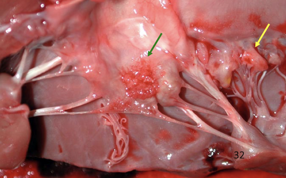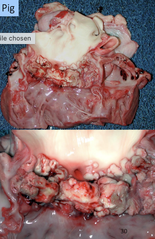 Shiny, smooth nodules → fibrous tissue over the valve