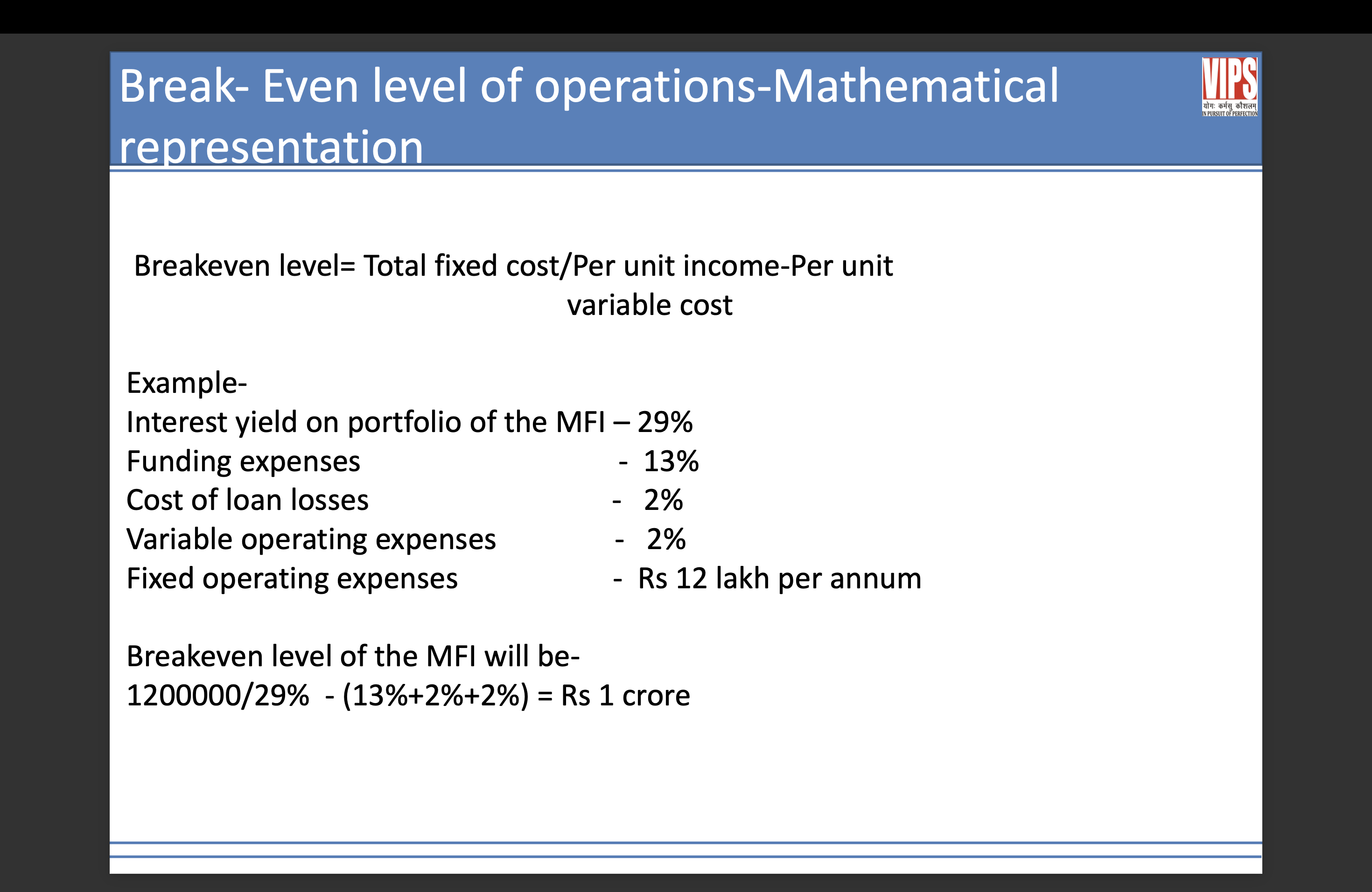 in case. In case of MFIs most of the CVP analysis is performed with loan products.