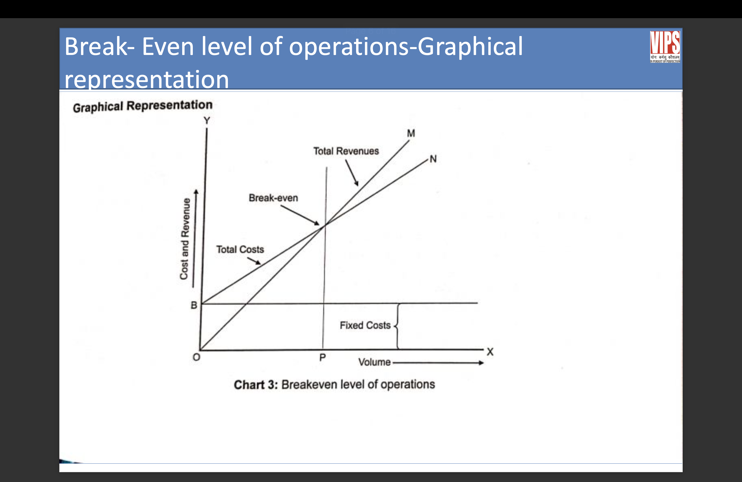 Cost volume profit analysis or break even analysis is used to compute the volume level size and mix of business at which total revenues are equal to total cost. Total cost and total revenues are equal, the business organisation is said to be breaking even.