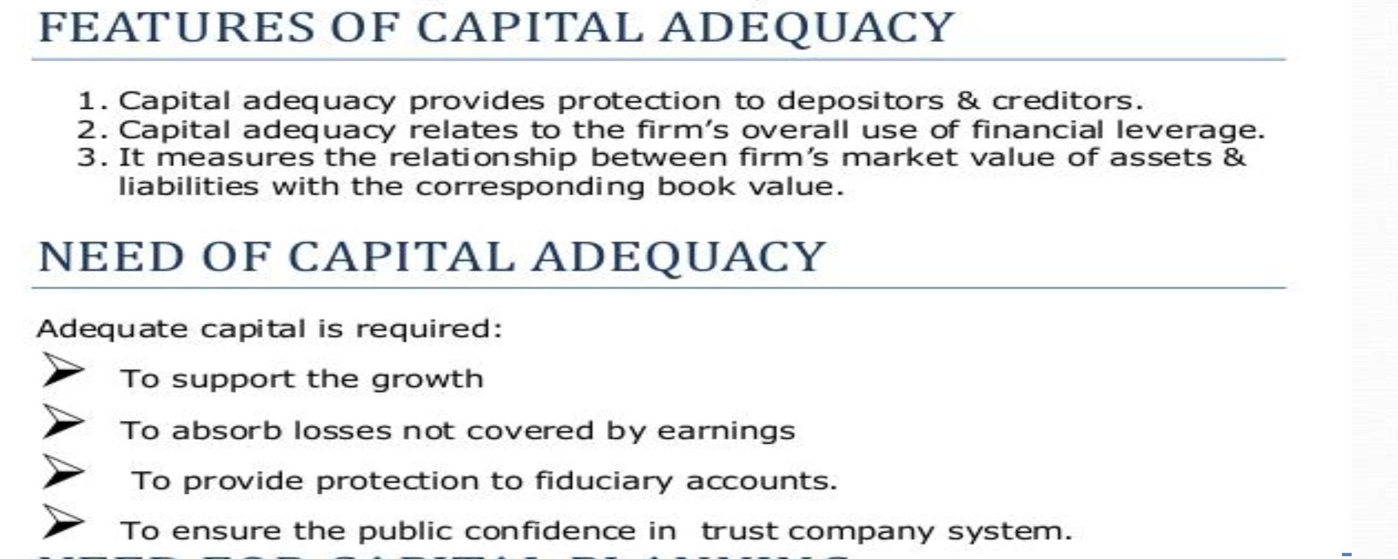 features and needs of capital adequacy