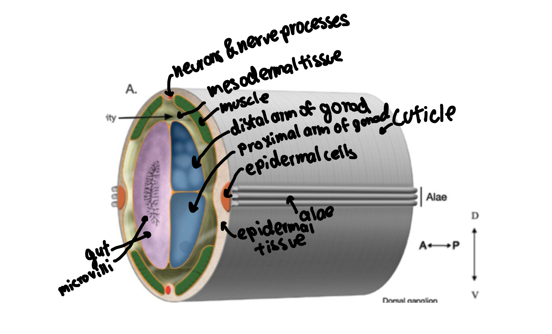 label c. elegans cross section