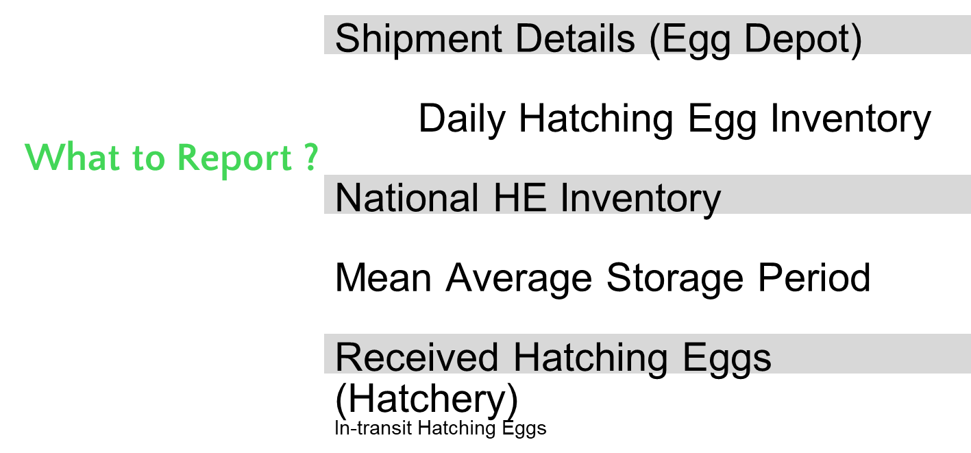 ✔Hatching Eggs at in-transit with corresponding storage period are monitored. Data will be used in addition to Hatchery inventory to compute the Total National Inventory.