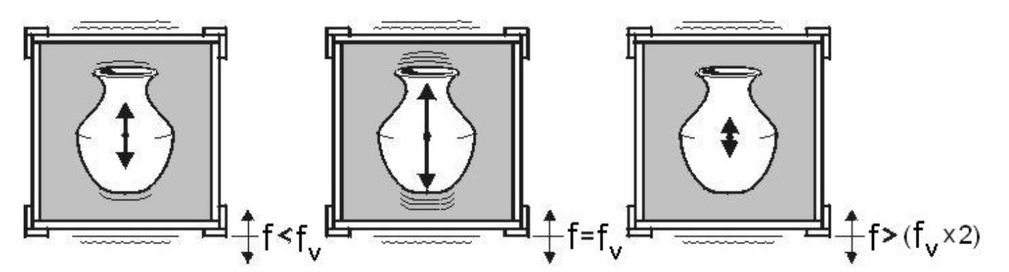 transmission: if vibration frequency lower than (fv), vase will vibrate at the same frequency and amplitude as the vibration source