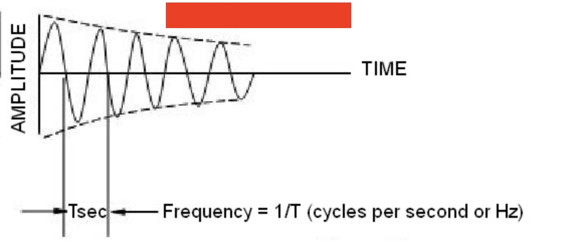 free vibration, amplitude diminishes with time due to damping forces eg friction and air resistance that dissipate vibration energy